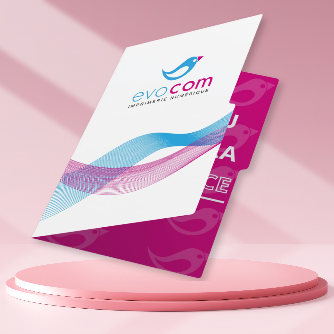 Chemises à rabats : Pochettes pour organiser et présenter vos documents. Ce service permet de renforcer votre image de marque tout en répondant à des besoins pratiques de communication, de signalisation ou de promotion. Il peut être personnalisé selon vos couleurs, logos, ou visuels, pour s’adapter à votre stratégie marketing.